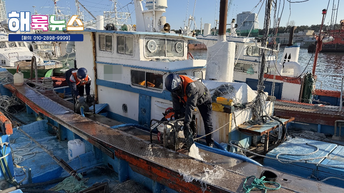 포항구조대 및 포항파출소는 배수펌프 총4대를 가동하여 배수작업을 실시하였으며, 09시 37분경 전체침수량 중 85% 배출 완료하여 선박기울기가 정상 복원되었다.