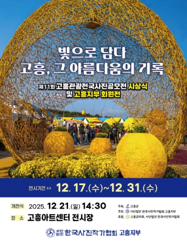 고흥군은 오는 12월 17일부터 31일까지 고흥아트센터에서 제11회 고흥관광 전국 사진공모전 전시회를 개최한...