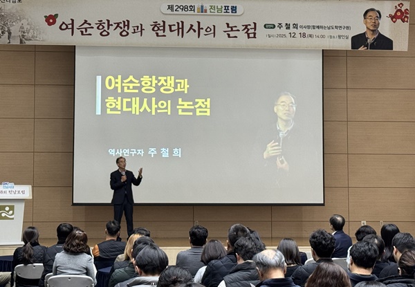 포럼은 지난 16일 동부청사 이순신강당과 18일 도청 왕인실에서 열렸으며, 도·시군 공무원, 출자·출연기관 직원 등 800여 명이 참석해 지역 현대사의 중요한 사건인 여순사건에 대한 정확한 이해와 역사적 의미를 되새겼다.