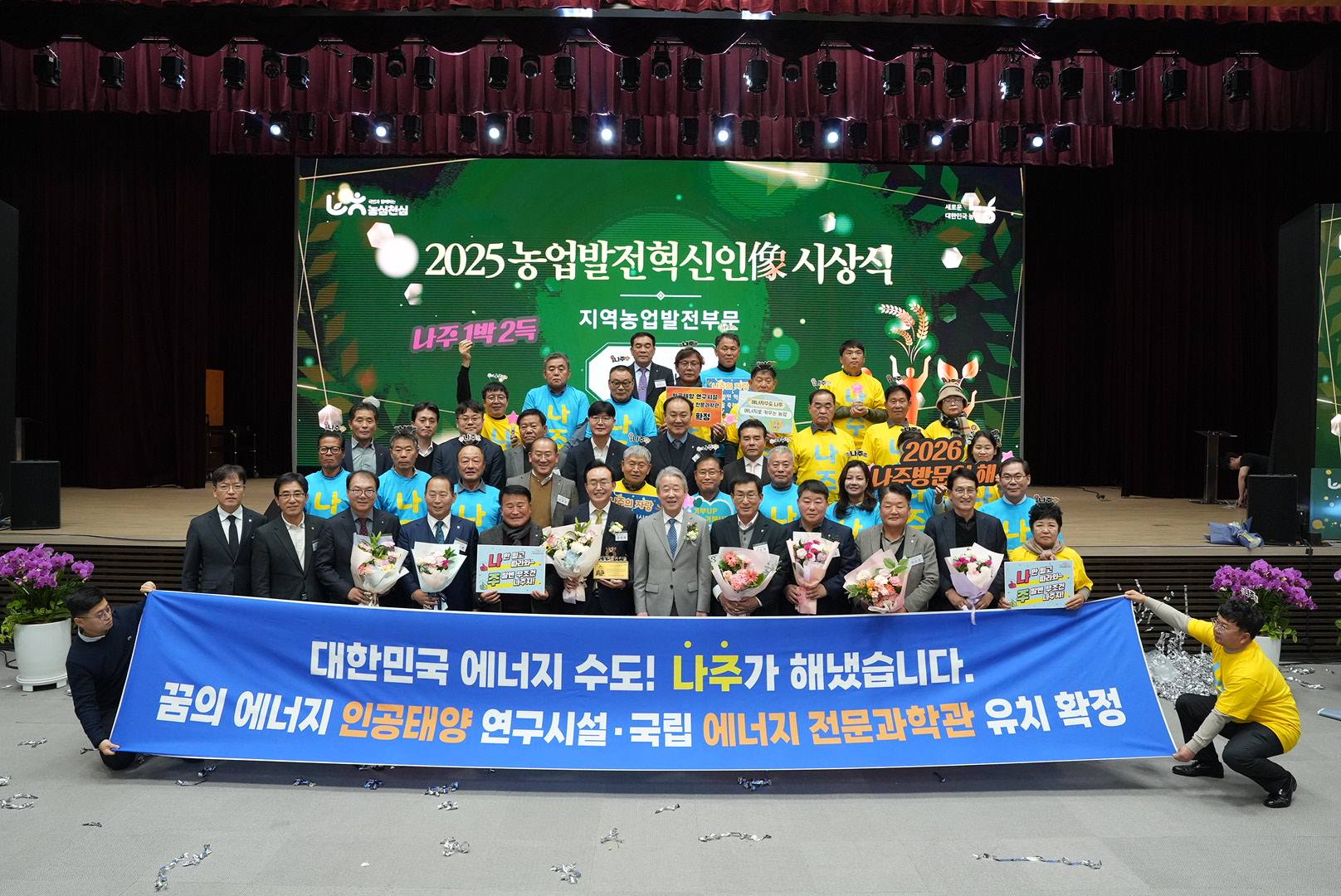 [정치부 조경수 기자]전라남도 나주시가 또 한 번 대한민국 농업의 위상을 드높였다. 지난 12월 18일 농협중앙회가 수여한 ‘2025 농업발전혁신인상’의 주인공은 바로 나주시였다. 그러나 이 상은 단순히 한 지방자치단체장의 치적을 넘어선다. 그것은 곧 나주 농업인 전체의 땀과 헌신이 국가적 성과로 인정받은 순간이었다.