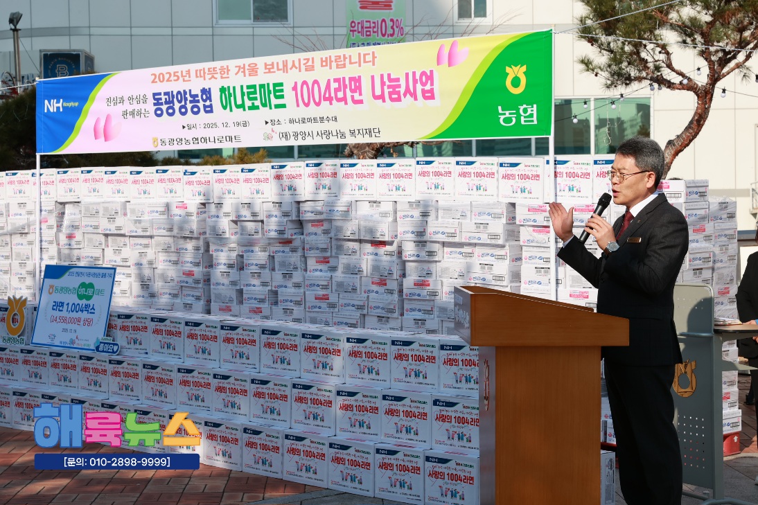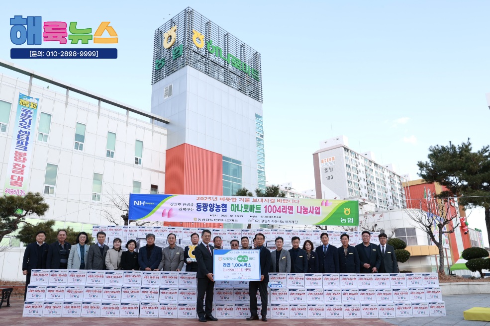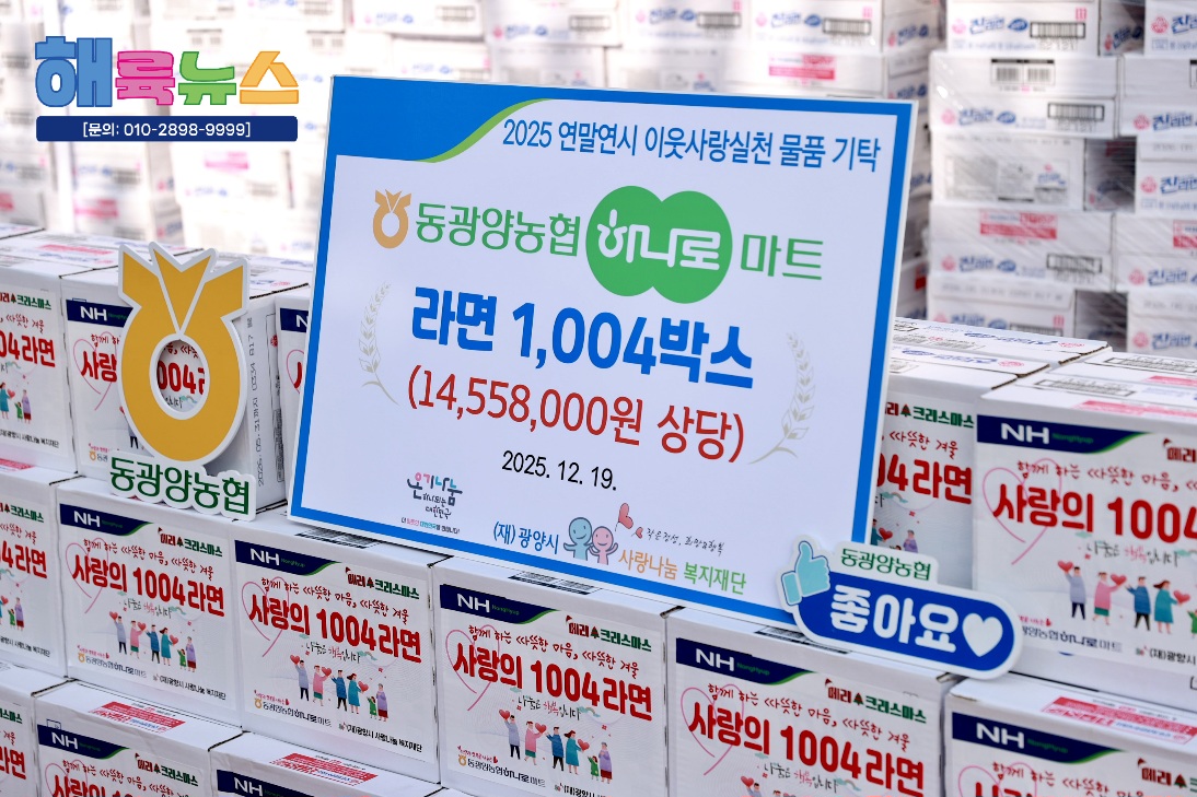 동광양농협(조합장 이돈성)은 19일 광양시사랑나눔복지재단(이사장 김재경)에 ‘1004라면 나눔사업’의 일환으로 라면 1004상자(약 1,455만 원 상당)를 전달했다.