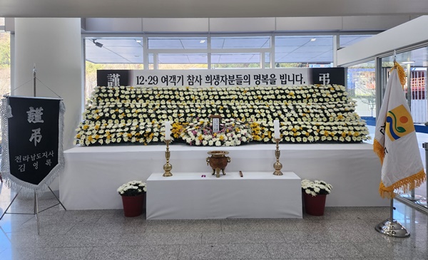 전라남도는 12·29 제주항공 여객기 참사 발생 1주기를 맞아 29일까지 8일간 ‘12·29 여객기 참사 1주기 희생자 추모 도민 합동분향소’를 운영한다고 밝혔다.