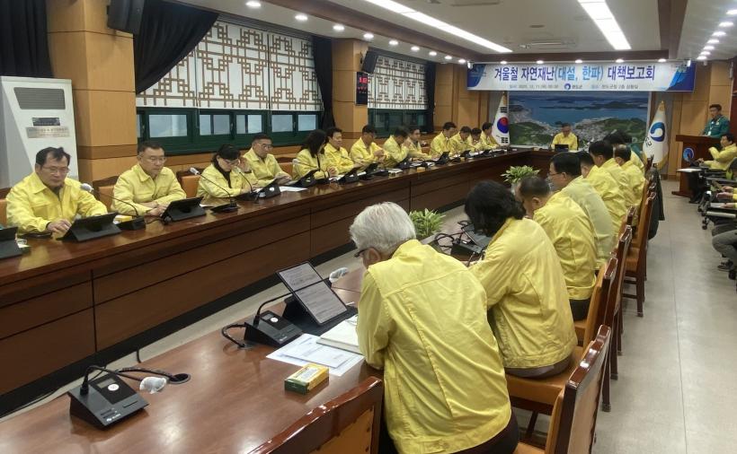 군은 지난 11일 군청 상황실에서 이범우 부군수를 주재로 ‘2025년 겨울철 대설·한파 종합대책 보고회’를 열어 부서별 추진 상황과 중점 관리 사항을 점검했다.