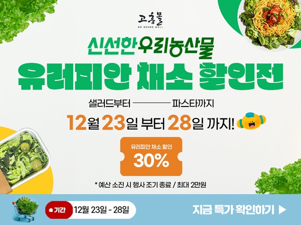 행사 기간 고흥몰에서는 30% 할인 쿠폰을 제공해 유러피안 채소를 보다 합리적인 가격으로 구매할 수 있도록 했다. 신선도와 품질을 우선으로 엄선한 상품을 선보여 가정 내 간편식부터 연말 파티 메뉴까지 폭넓게 활용할 수 있다.