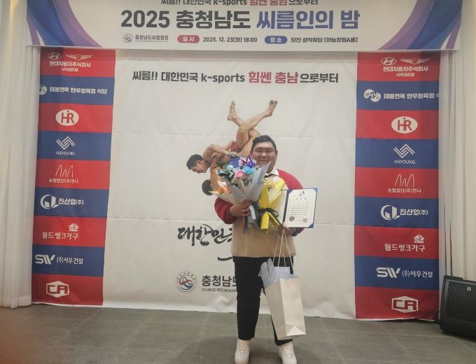 지난 23일 충남 당진시 A웨딩홀에서 열린 '2025년 충남 씨름인의 밤' 행사에서 청양초등학교 김민규(38) 씨름 감독이 충남교육감 표창을 수상하며 큰 주목을 받았다.