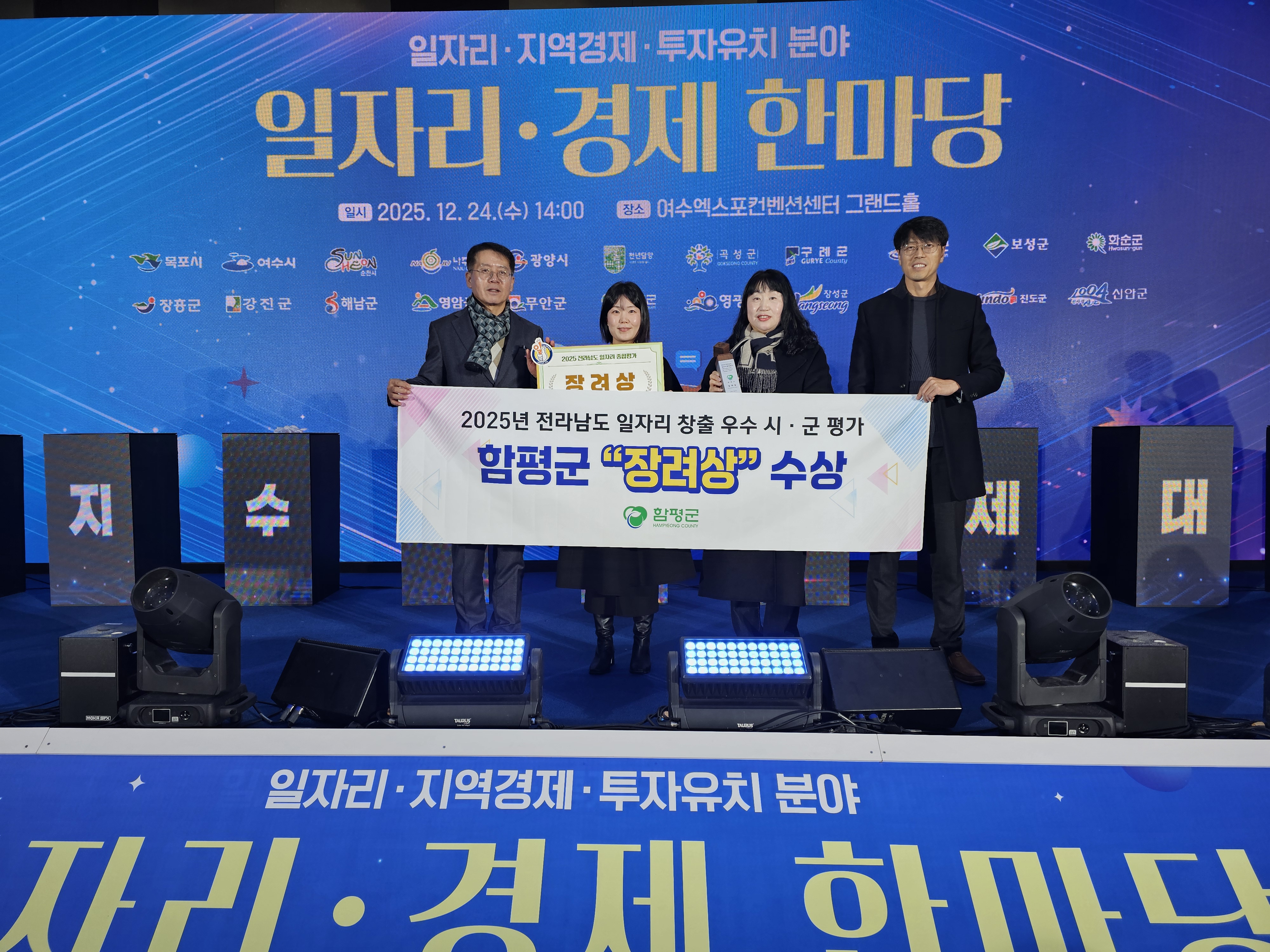 함평군은 지난 24일 여수 엑스포컨벤션센터 그랜드홀에서 열린 ‘2025 전라남도 일자리·경제 한마당 행사’에서 전라남도 주관 일자리 창출 우수 시·군 평가 결과 장려상을 수상했다고 25일 밝혔다. 이는 2018년 수상 이후 7년 만의 의미 있는 성과로, 지역 고용 정책의 내실과 지속 가능성을 다시 한번 입증했다.
