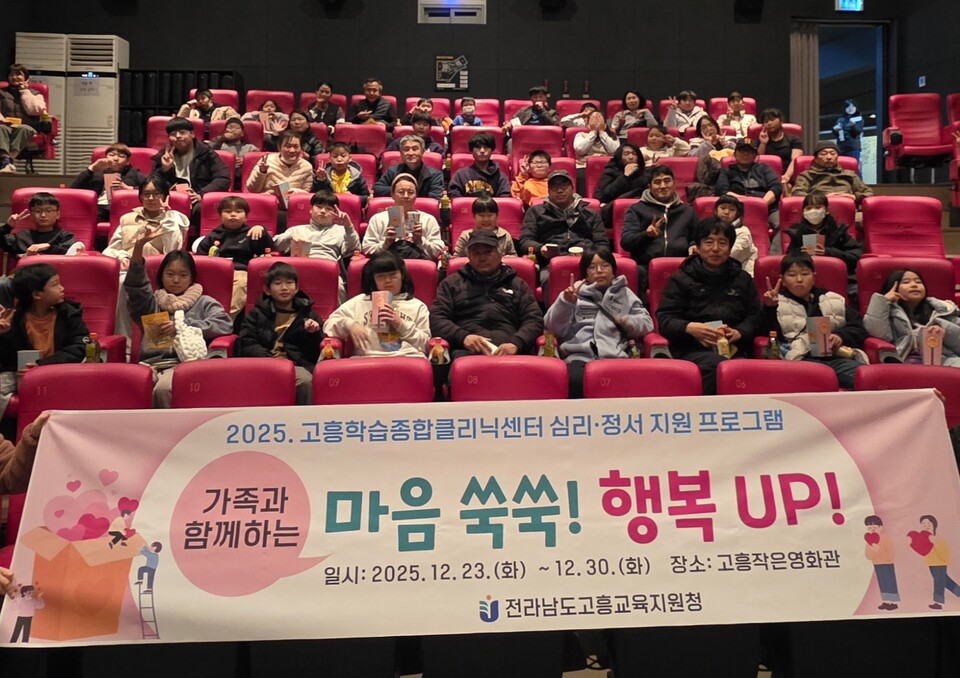 전라남도고흥교육지원청(교육장 권형선)은 12월 23일부터 30일까지 총 4일에 걸쳐 고흥작은영화관에서 학생과 학부모를 대상으로 ‘학습동기 향상 문화체험 프로그램’을 운영해 기초학력 향상과 학습 의지 강화를 도모한다.