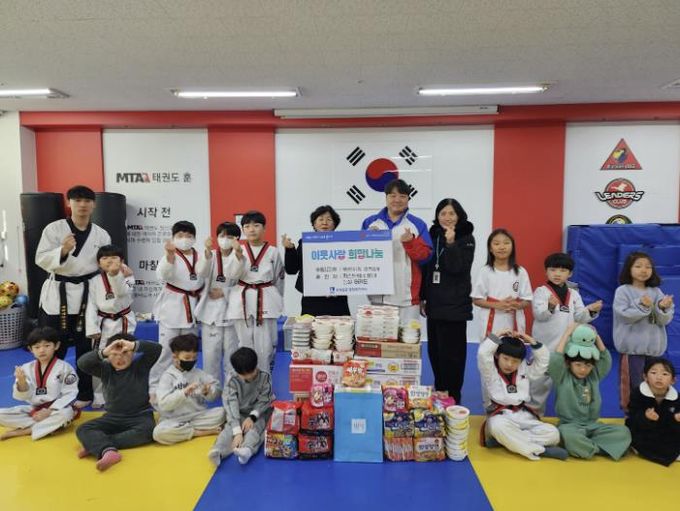수원시 권선구 호매실동에 위치한 퍼스트 위너 MTA 능실태권도장에서는 12월 한 달가량 원생들의 햇반, 라면 기부 릴레이가 이어졌다.