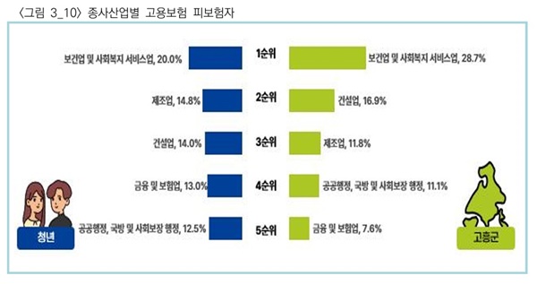 일자리 관련 통계 결과를 보면, ‘2024년 하반기 기준 청년 고용률은 81%로 나타났으며, 주요 종사산업은 보건 및 사회복지서비스업이 20%로 가장 높았다. 이어 제조업(14.8%), 건설업(14%) 순으로 분석됐다.