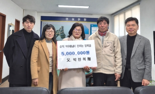 사진 설명 나주시 문평면 박천복 일원산업 대표는 지난 26일 문평면에 지역 인재 육성을 위한 장학금 500만...