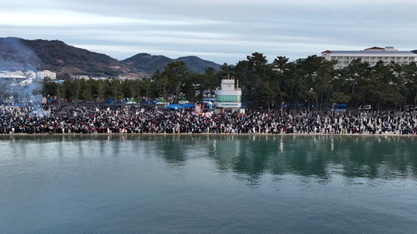 2026년 새해 첫날인 1월 1일 전남 보성군 율포 솔밭해변 일원이 해맞이객들로 인산인해를 이루고 있다. 보...