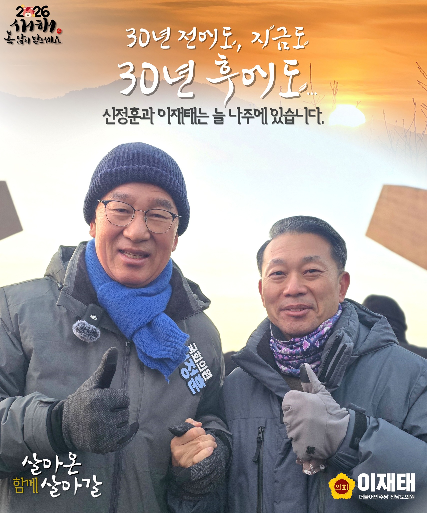 이재태 의원은 이날 나주 시민과 당원들에게 보낸 신년 메시지를 통해, 신 위원장과 함께 장엄한 해돋이를 보며 시민들의 건강과 행복을 기원했다고 밝혔습니다.