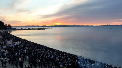2026년 새해 첫날인 1월 1일 전남 보성군 율포 솔밭해변 일원이 해맞이객들로 인산인해를 이루고 있다. 보...