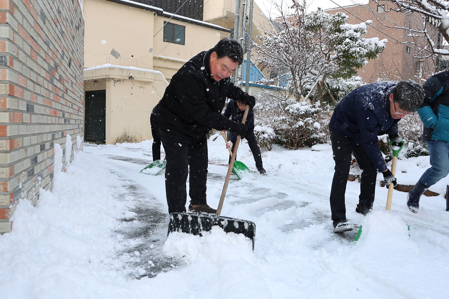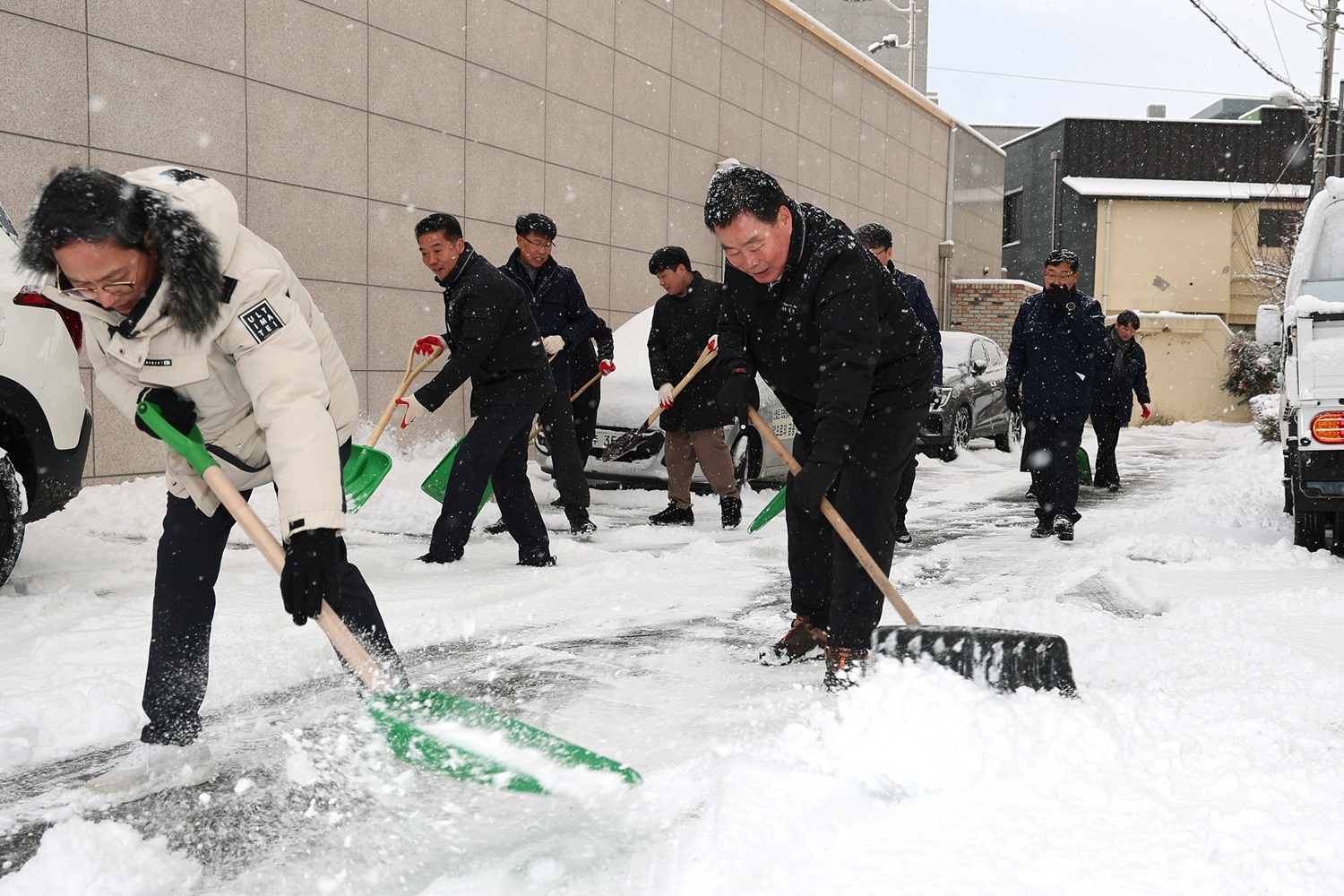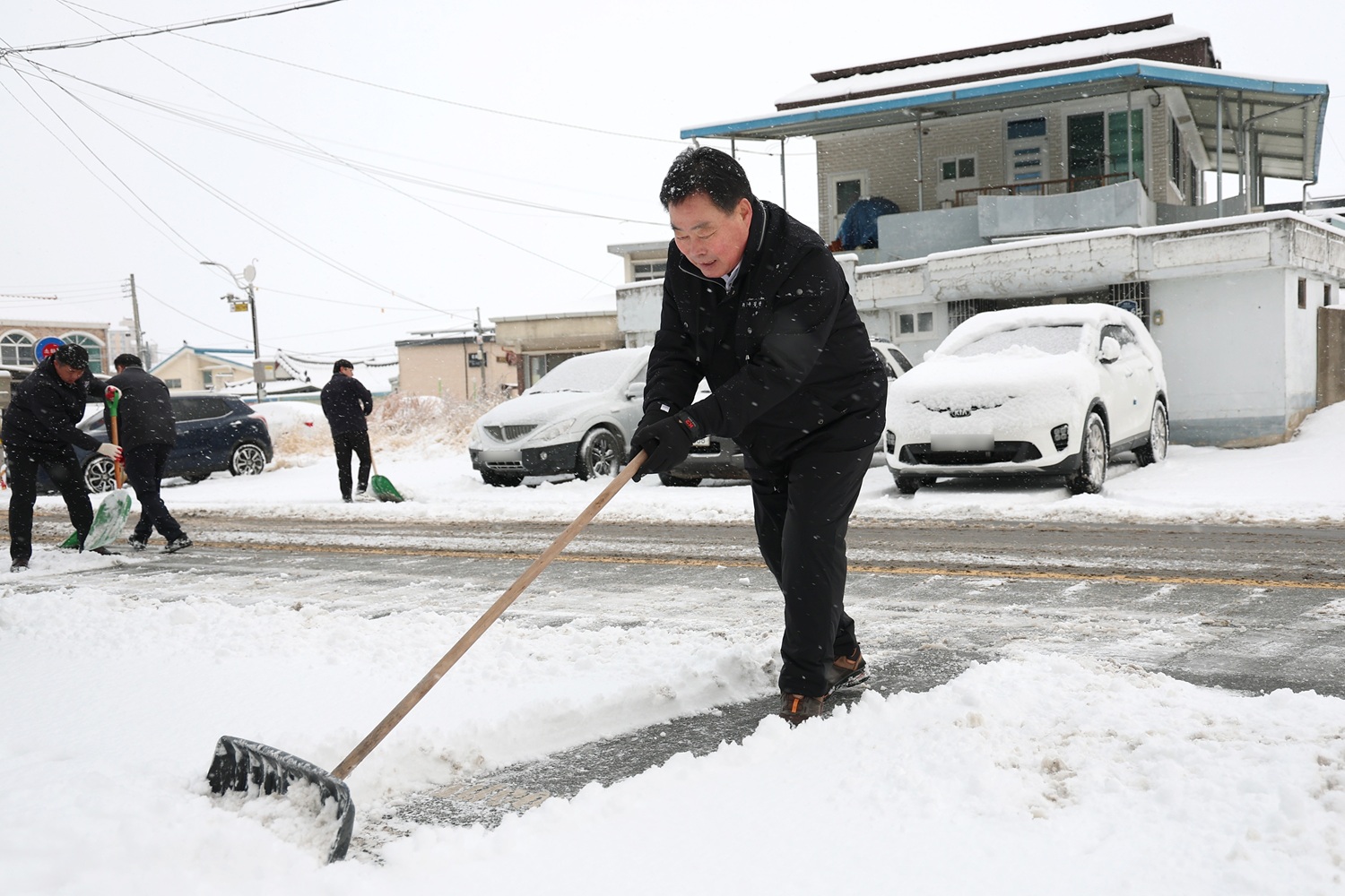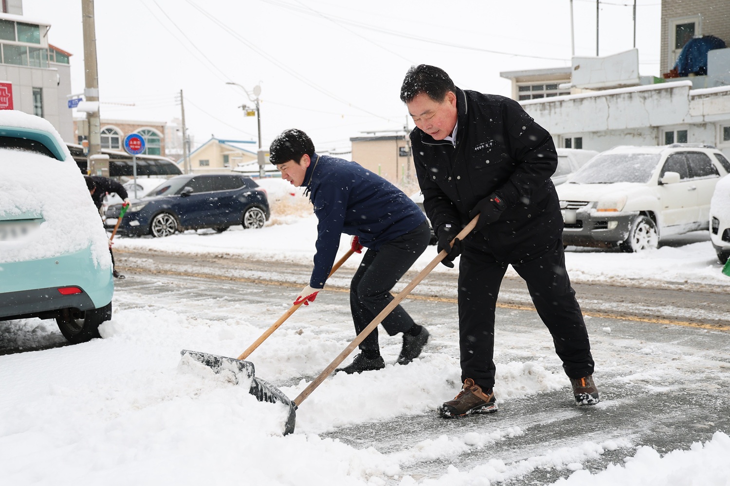 2일 이른 아침, 김산 군수와 김병중 부군수를 비롯한 군청 직원들은 무안읍 중앙로와 주요 골목길에 직접 나서 눈을 치우며 현장 대응에 나섰다. 제설차량 13대를 투입해 관내 180km 도로에 대한 제설작업도 병행했다.