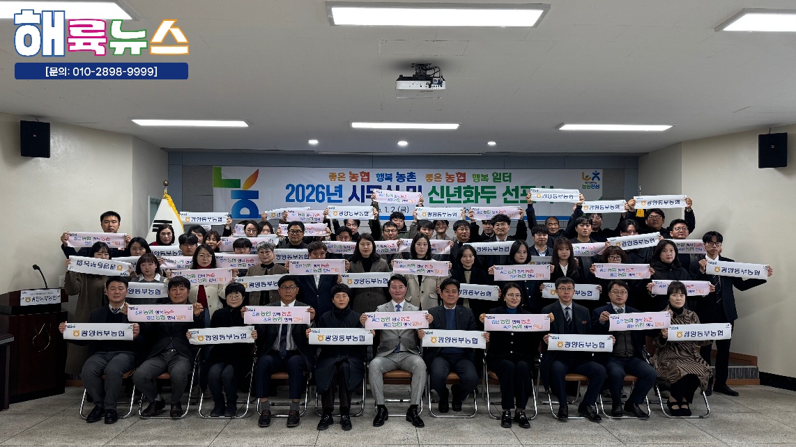 광양동부농협(조합장 문정태)은 새해 첫 영업일인 지난 1월2일 본점 회의실에서 전체직원이 참석한 가운데 시무식을 개최했다. 이날 시무식에서는 2026년 신년화두를 ‘좋은농협 행복농촌, 좋은농협 행복일터’로 선정하고 신년화두 선포식을 함께 진행하며 새해 힘찬 출발을 다짐했다.