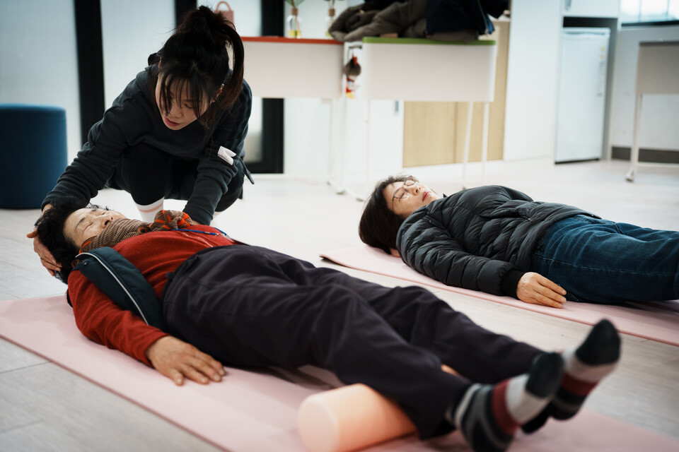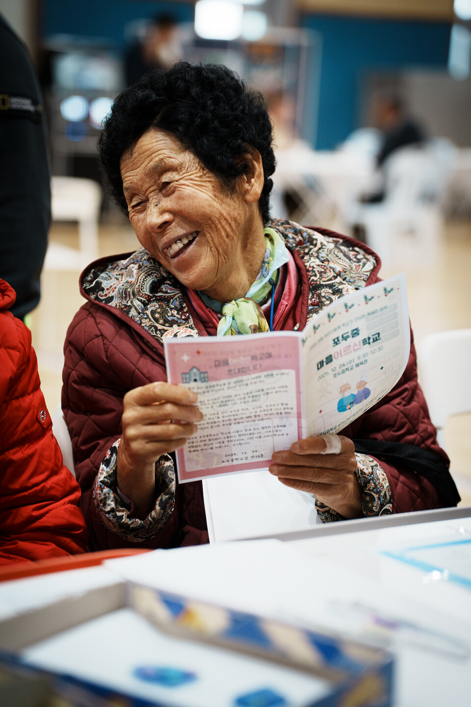 본격적인 수업이 시작되자 체육관과 교실은 어르신들의 웃음소리로 가득 찼다. 학생들은 직접 준비한 ▲놀이 마당(댄스·노래·요가) ▲체험 마당(바다유리·마그넷·풍경·방향제·머핀·소주잔 만들기) ▲이야기 마당(마을단체 싱글벙글쇼) 등을 진행하며 어르신들의 열정적인 참여를 이끌어냈다. 또한 ‘포두 사진관’에서는 어르신들의 고운 모습을 즉석 사진으로 담아 선물했으며, 어르신들은 각 부스를 돌며 도장을 받는 ‘스탬프 투어’를 통해 배움의 즐거움을 만끽했다. 특히 포두중 학부모회(김미정·김진희·이정숙)는 추운 날씨에 학교를 찾은 어르신들을 위해 ‘먹거리 마당’을 열고 뜨끈한 어묵국과 즉석에서 부쳐낸 해물파전을 대접했다. 어르신들은 학생들이 준비한 배움의 열기와 학부모들이 정성껏 차린 음식을 나누며 시종일관 밝은 미소를 지었다.