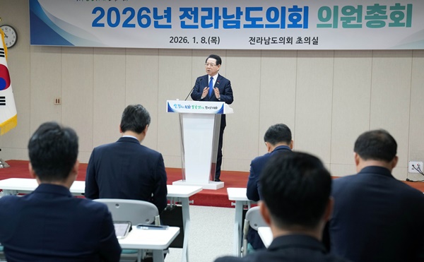 전라남도는 8일 도의회 초의실에서 열린 의원총회에서 ‘광주·전남 행정통합 설명회’를 열어 행정통합 필요성, 추진기구 발족, 특별법안 발의 등 로드맵을 공유했다.