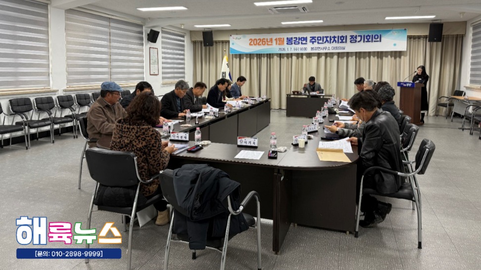 광양시 봉강면 주민자치회(회장 이기욱)는 지난 7일 봉강면사무소 대회의실에서 2026년 1월 봉강면 주민자치회 정기회의를 개최했다고 밝혔다.