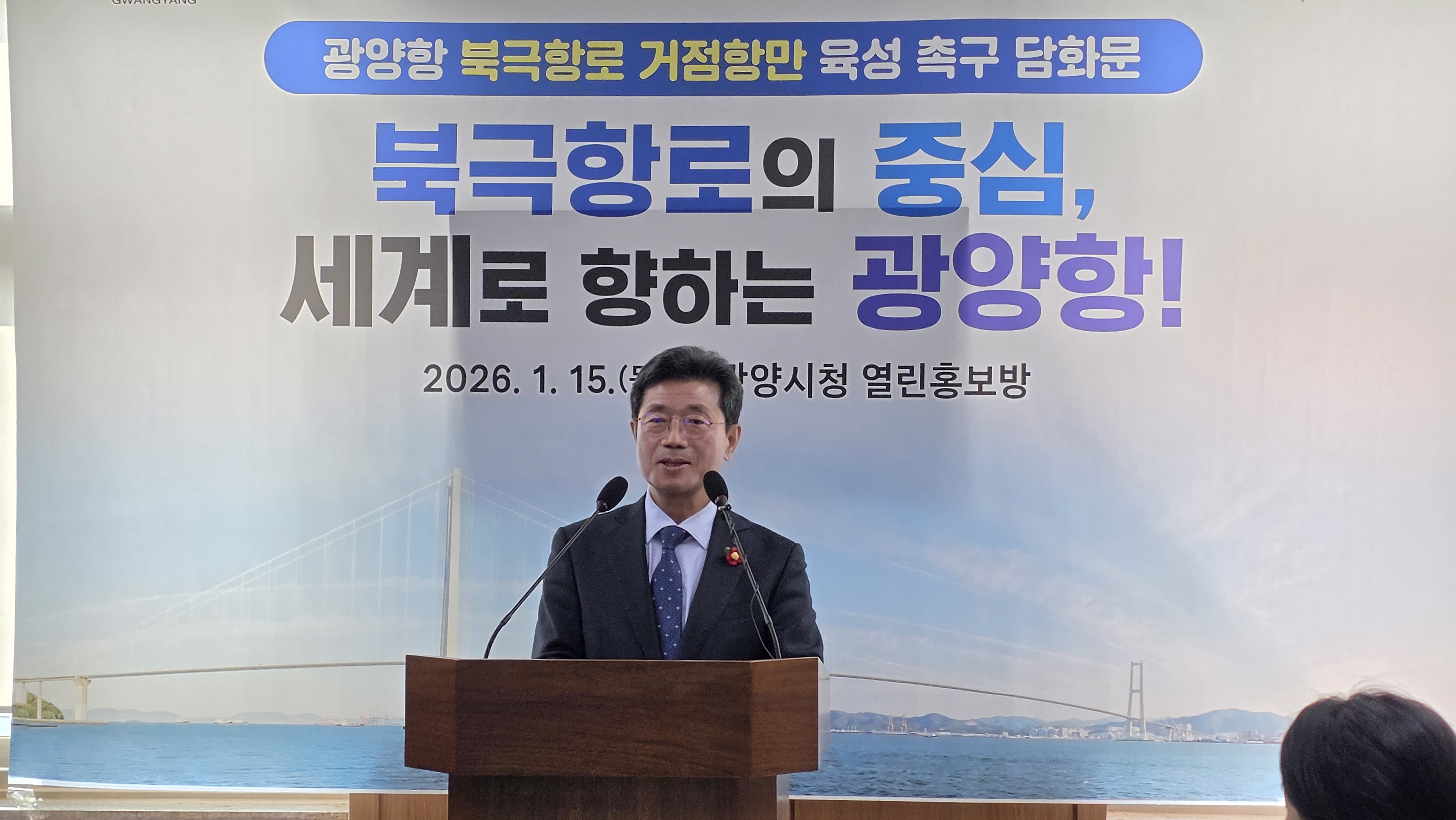 광양시는 1월 15일 시청에서 ‘광양항 북극항로 거점항만 육성 촉구 담화’를 통해 북극항로 개척이 본격화되는 현 시점에서 광양항이 수행할 수 있는 역할을 설명하고, 이에 대한 국가 차원의 정책적 지원 필요성을 강조했다.