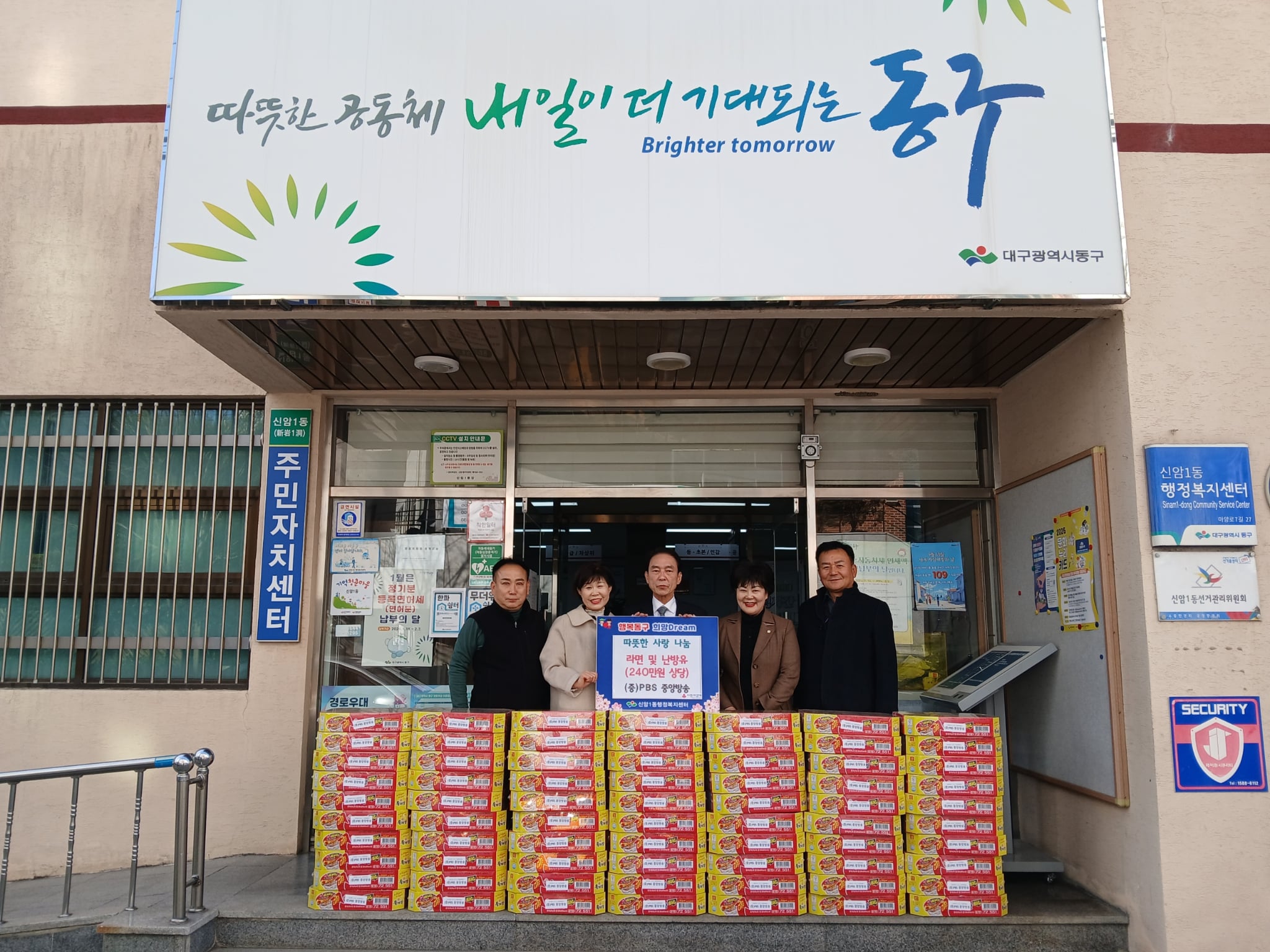 PBS중앙방송(대표 금승한)은 지난 16일, 신암1동 행정복지센터를 방문해 겨울철 저소득 취약계층의 생활 안정을 위해 난방유(100만원 상당)와 컵라면 200상자를 기부했다.