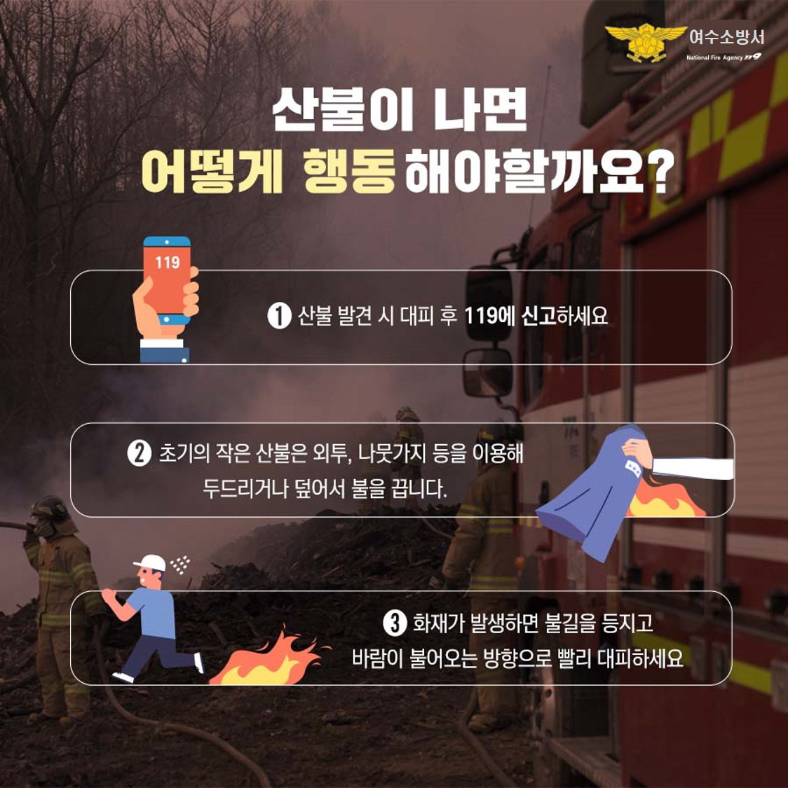 서승호 여수소방서장은 “산불은 한 번 발생하면 대형 재난으로 이어질 가능성이 크다”며 “시민 모두가 예방수칙을 철저히 지켜 소중한 산림자원을 보호하는 데 동참해 주시길 바란다”고 말했다.