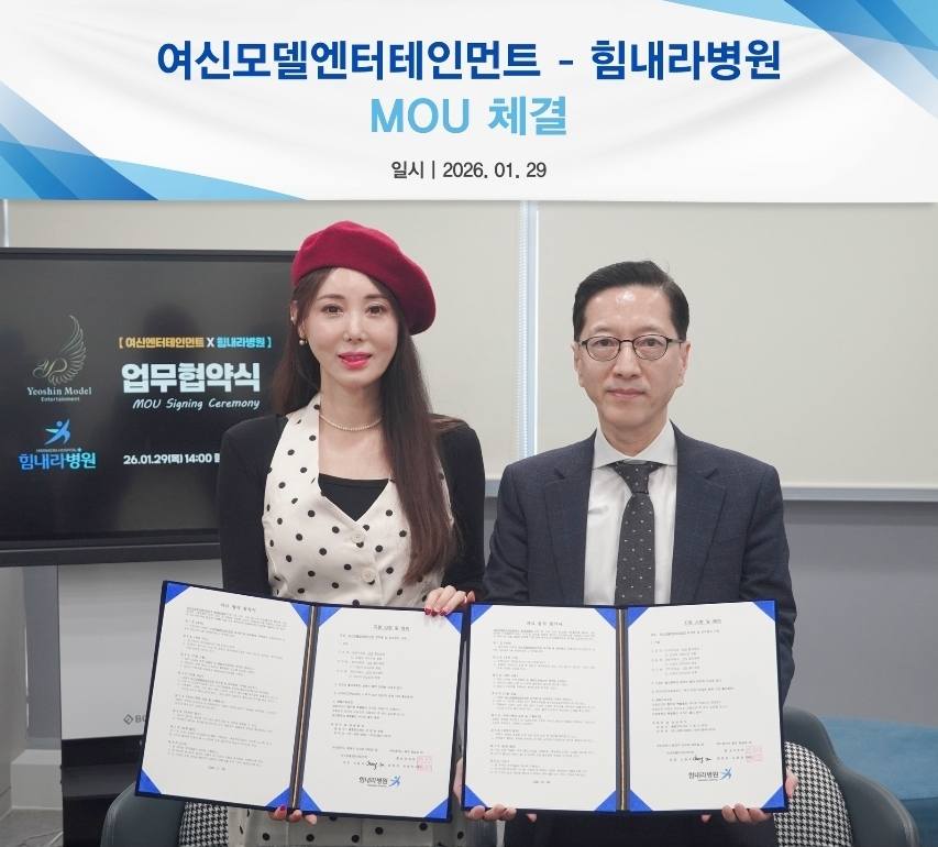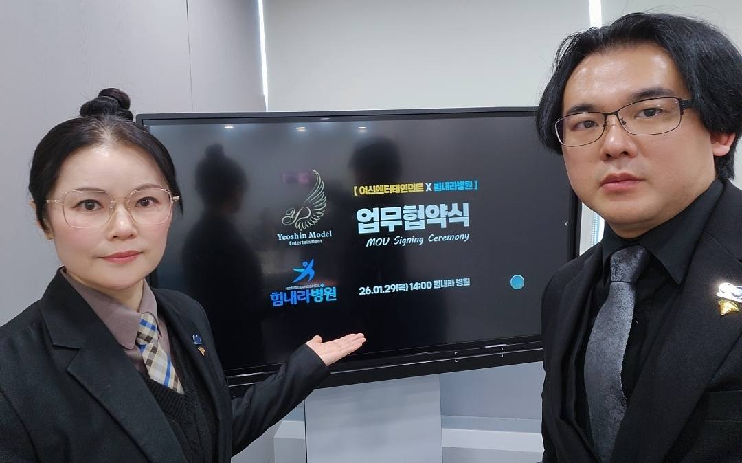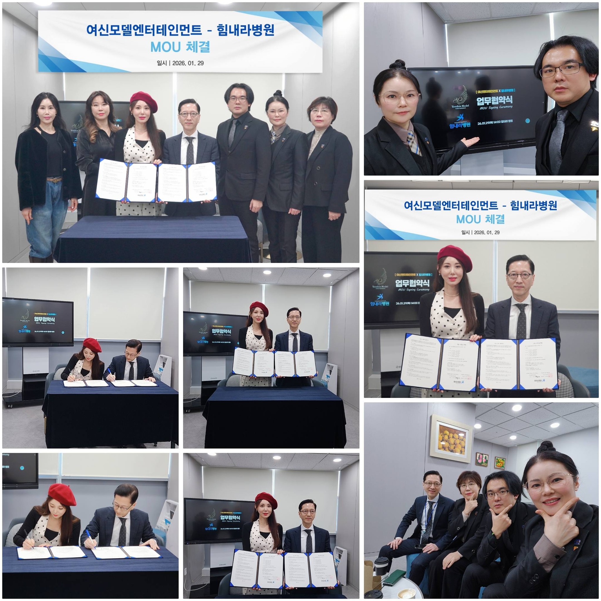 지난 29일 글로벌 에이전트 전문기업 (주)커넥트스페이스 (대표이사 남성화, 하시우)는 여신모델엔터테이먼트 (대표 신청주)와 힘내라병원 (병원장 김문찬, 종합검진센터 부장 구정서)과의 협약식에 참석했다.