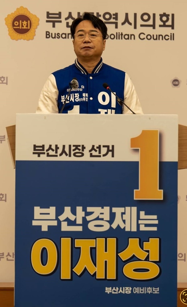 이재성 전 위원장은 오전에 부산시장 예비후보자 등록을 마치고 부산광역시의회 브리핑룸에서 기자회견을 열고 “말이 아니라 실력으로 부산 경제를 살려내겠다.”고 밝히고 주요 공약들을 발표했다.