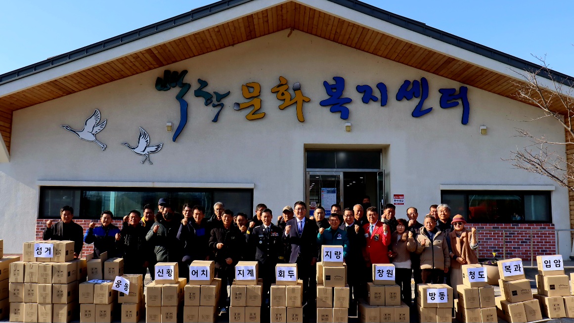지난 2026년 2월 9일(월) 광양시 진상면 웅동마을 황치환 이장과 우광일 광양상공회의소 회장이 안전과 복지 아우르는 상생 실천으로 지역민에게 나눔행사를 '진상면백학문화복지센터'에서 가졌다.