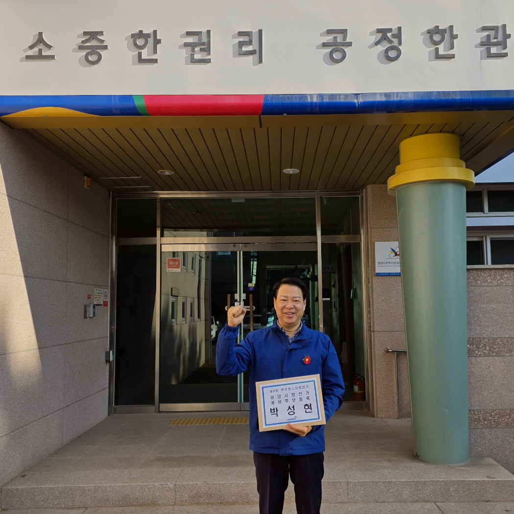 박 예비후보는 오늘 광양시선거관리위원회에 예비후보 등록을 마치고 “새로운 광양을 향한 항해를 시작한다”고 출마 의지를 밝혔다. 그는 “지역경제 활력 회복과 미래 성장동력 확보가 시급하다”며 “시민과 함께 변화를 만들어가겠다”고 강조했다.