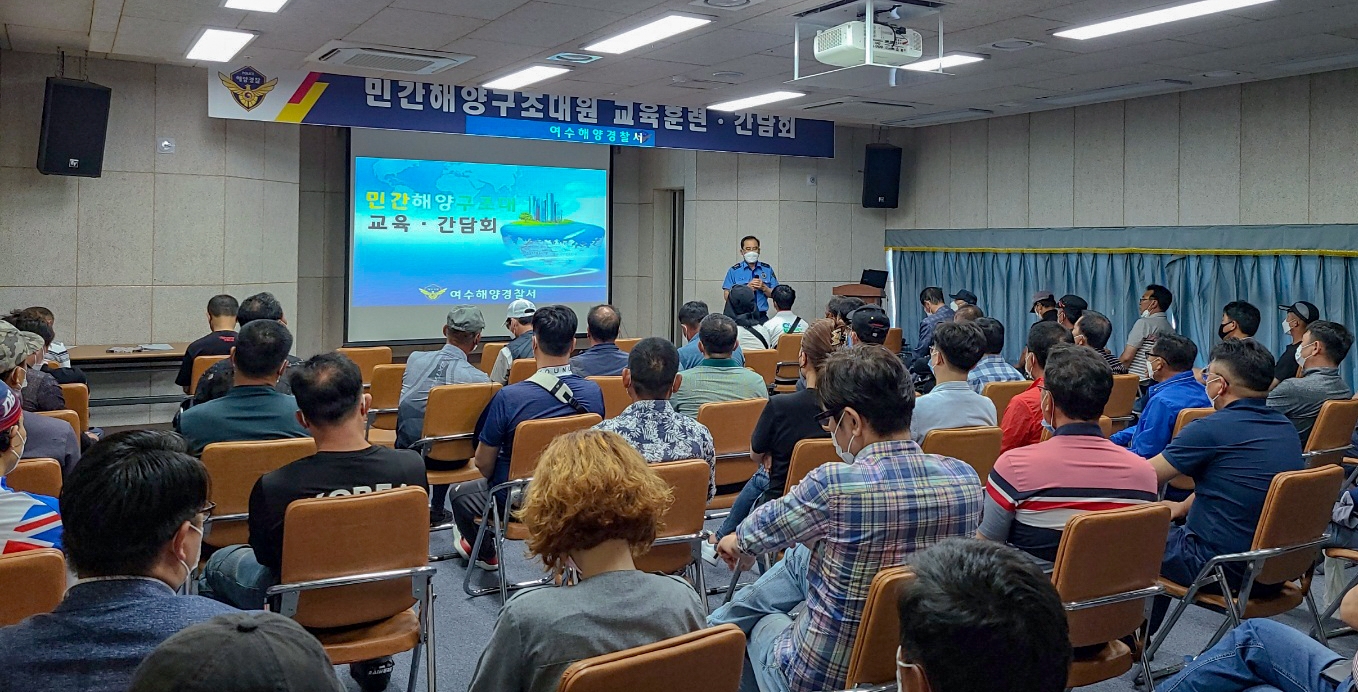 여수해양경찰서(서장 이철우)는 16일 여수 이순신 마리나 일원에서 민간해양구조대원의 구조 역량 강화와 복지향상을 위한 상반기 민간해양구조대원 간담회 및 교육․훈련을 실시했다고 밝혔다.