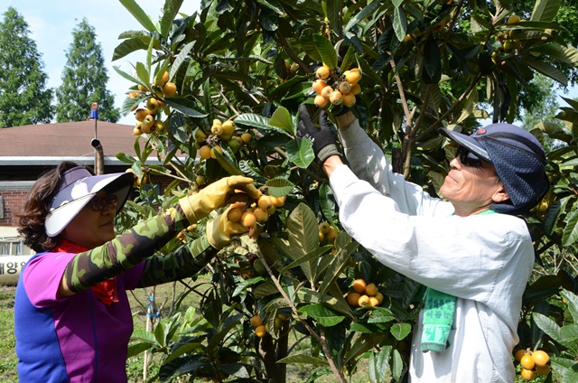 [해륙뉴스1=전남,고흥]초여름 오후 황금색으로 물든 넓디나 넓은 농장에서 비파열매를 수확하는 일꾼들의 얼굴에 구슬땀이 방울방울 흘러 내린다.