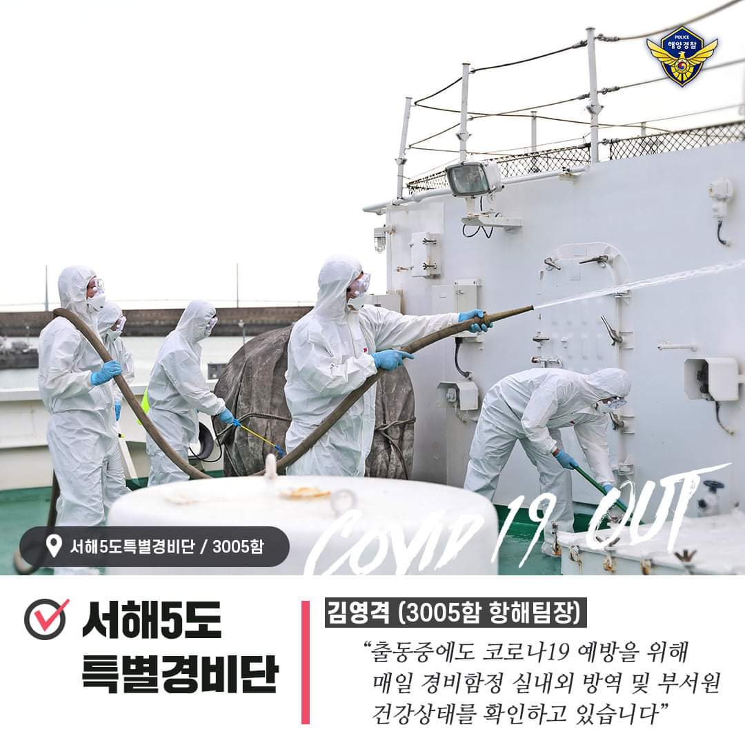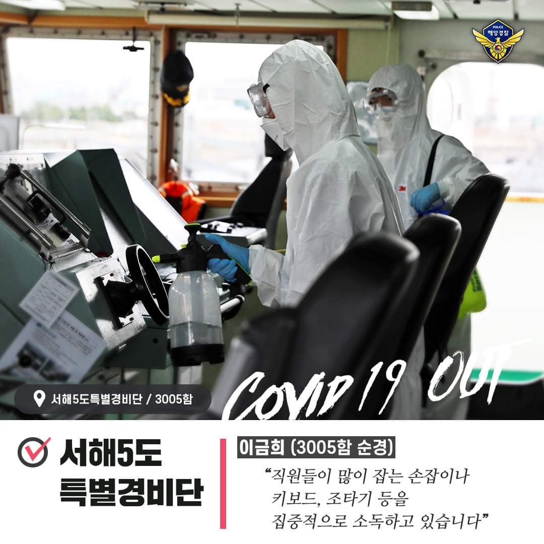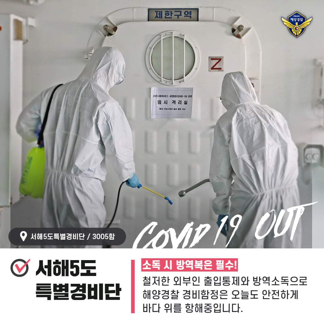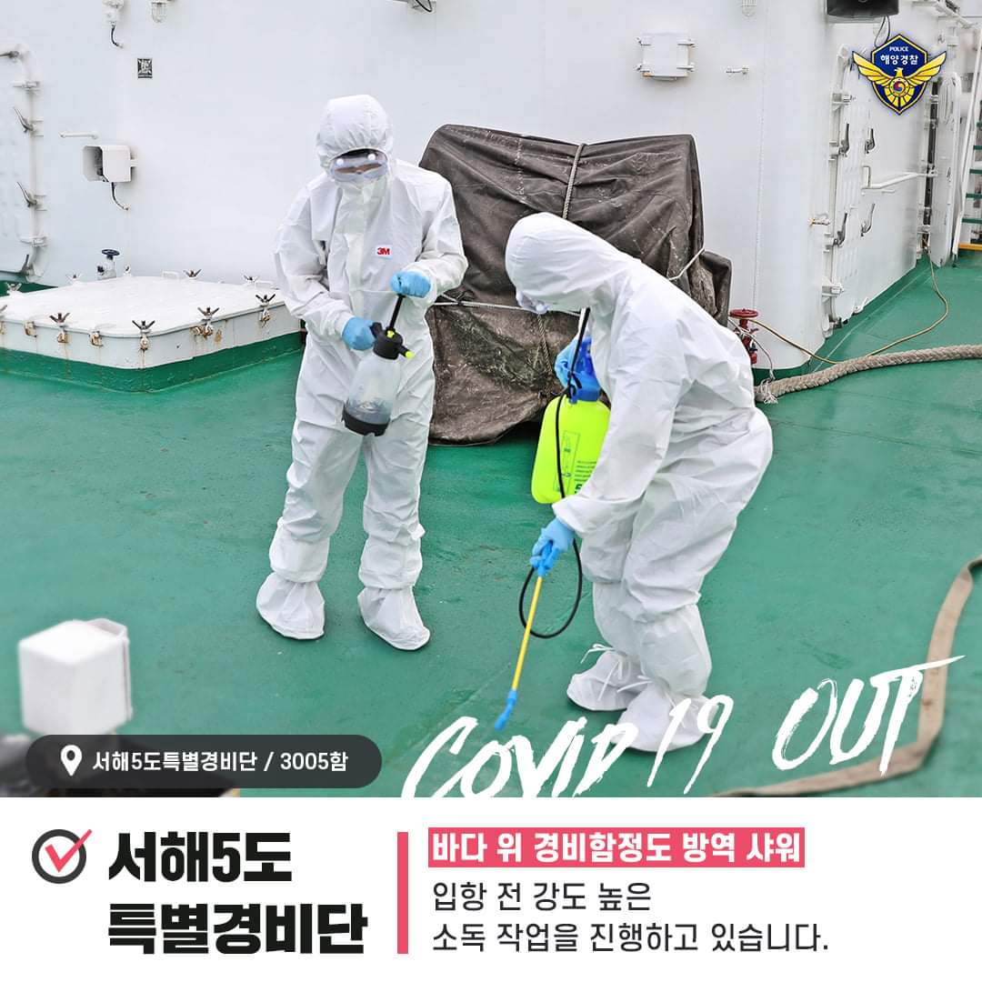 철저한 외부인 출입통제와 방역소독으로 해양경찰 경비함정은 오늘도 안전하게 바다 위를 항해중입니다. 🚢⚓️