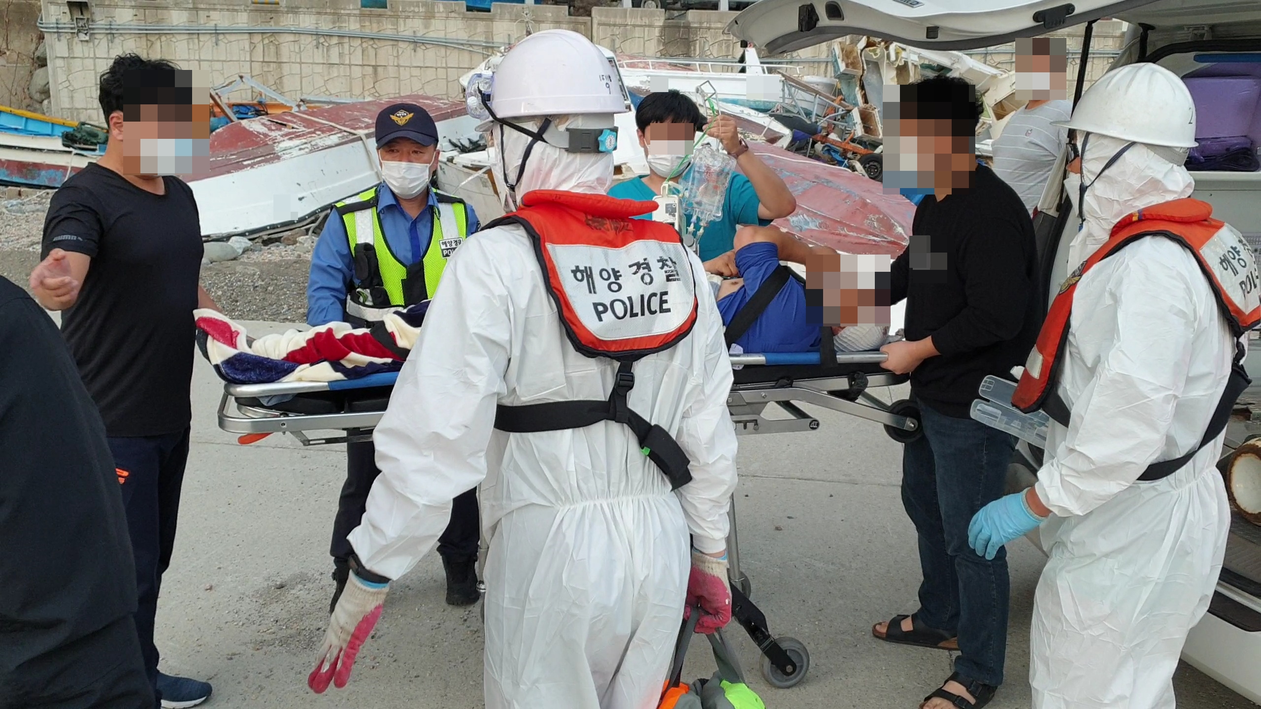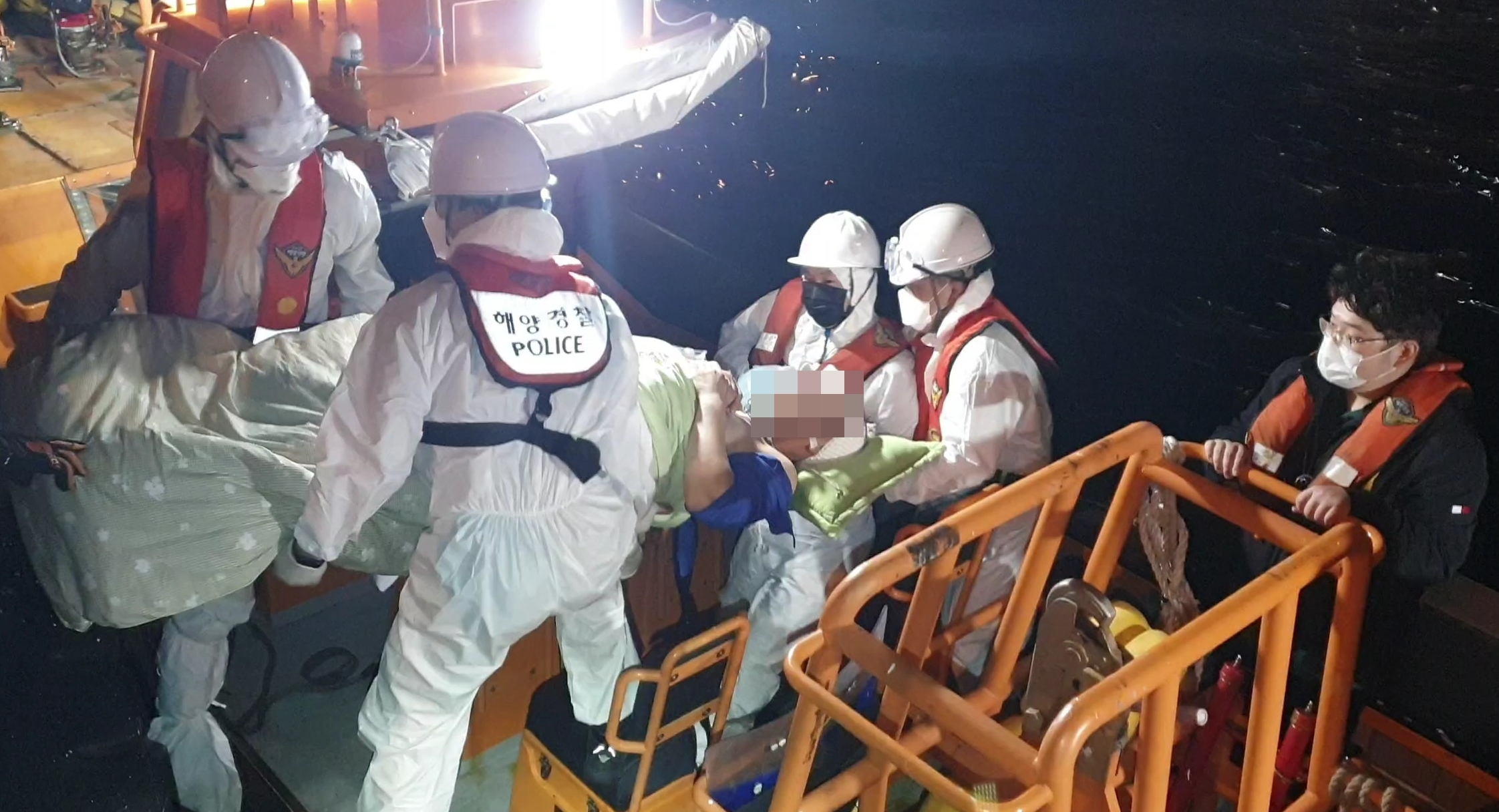 이날 동해해상에는 풍랑특보가 내려져 3~4m의 높은 파도와 함께 강풍이 부는 등 기상이 불량하여 헬기가 뜨지 못하자 울릉 인근 해상에서 경비차 이동 중인 1,500톤급 경비함정을 울릉 저동항으로 급파하여 환자와 의사 등 6명을 승선시킨 후, 같은 날 밤 10시 45분경 묵호항에 대기 중이던 119구급차량 2대에 환자를 인계하여 강릉 아산병원으로 이송 조치했다.