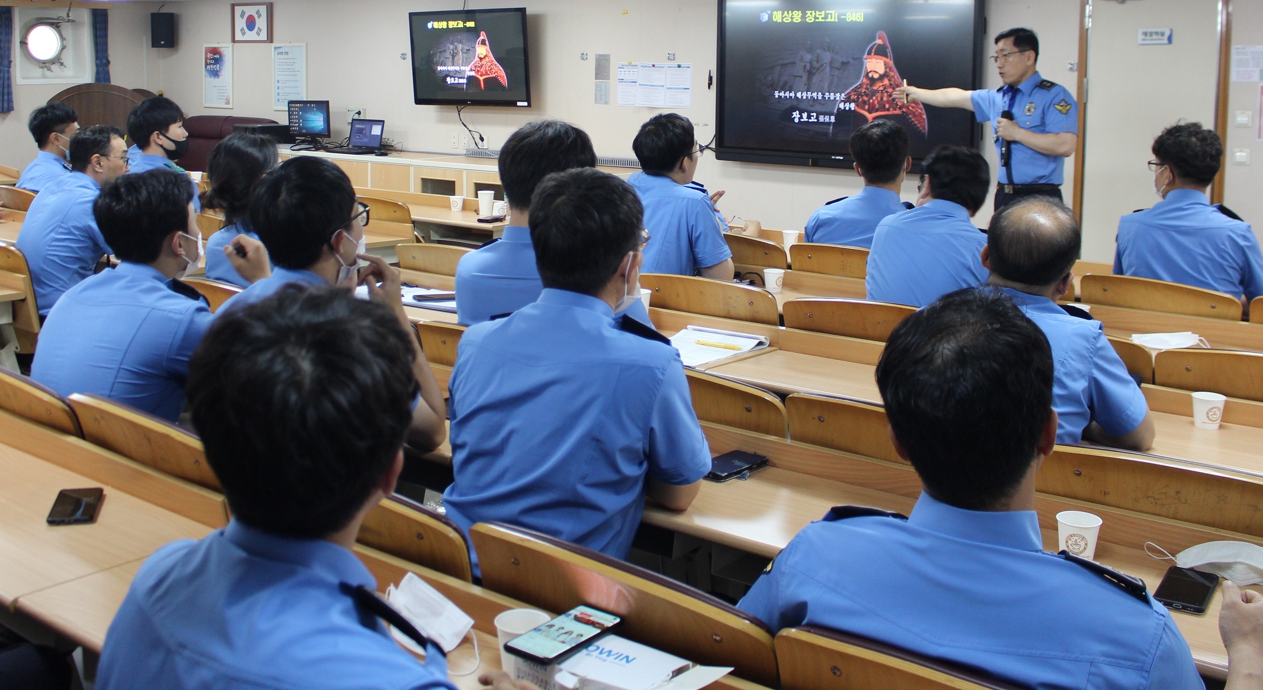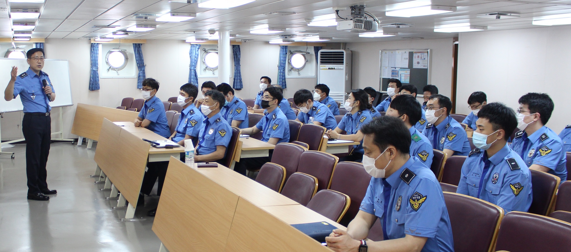 [해륙뉴스1=해양경찰청]해양경찰교육원장,실습함 승조원 대상 특강]