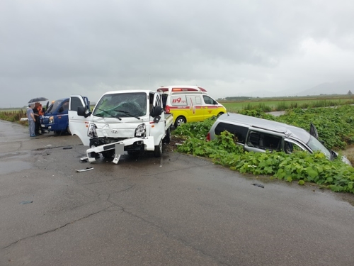 [해륙뉴스1=전남,고흥]빗길 속 농로길을 운행하던 승합차와 소형트럭이 충돌해 운전자가 부상을 입은 사고가 발...