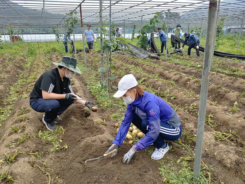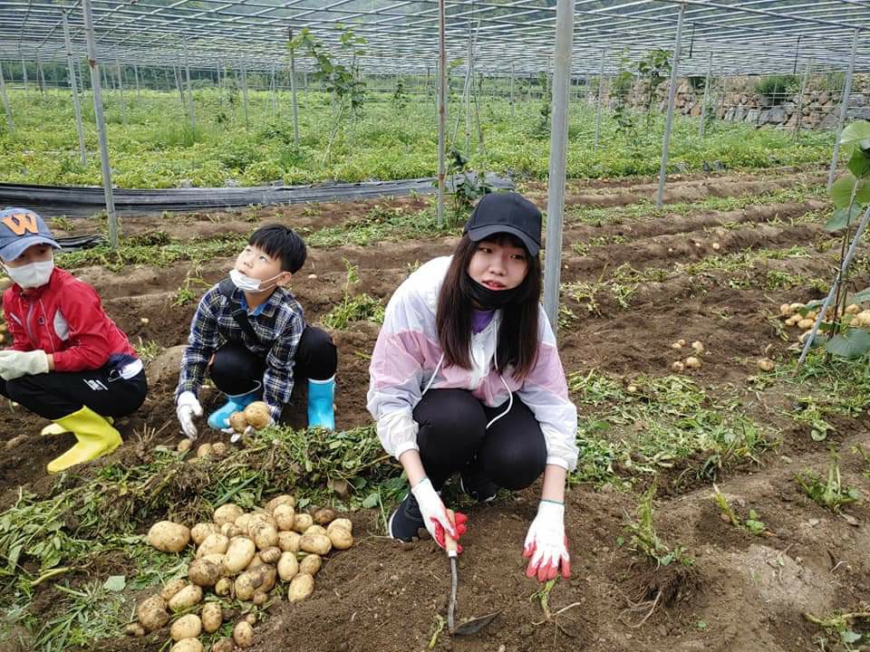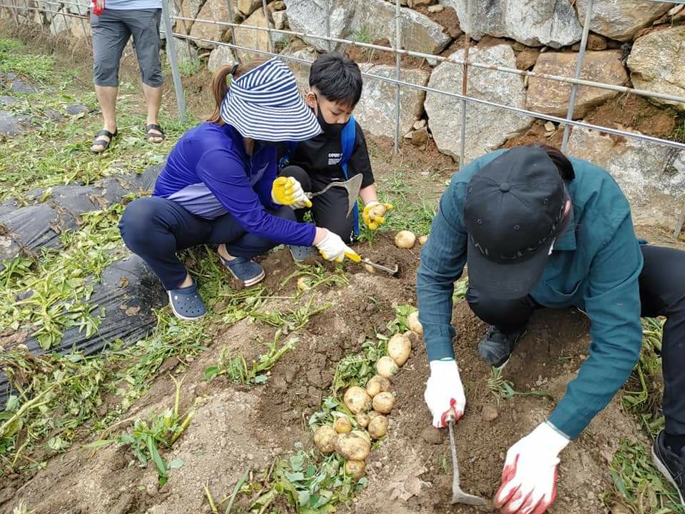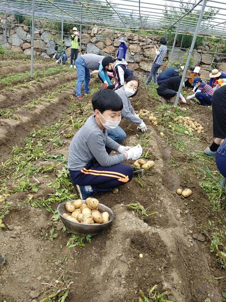 놀토에 커가는 2세들과 함께 광양시 옥곡면 오동마을 감자캐기봉사를 하였다.