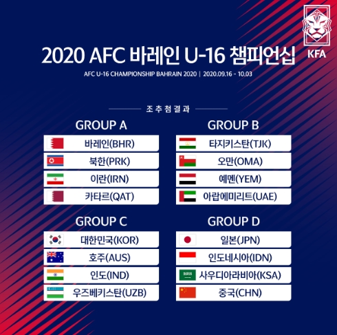 [해륙뉴스1= KFA]AFC U-16, U-19 챔피언십 조편성 확정오는 9월과 10월에 개최되는 2020 ...