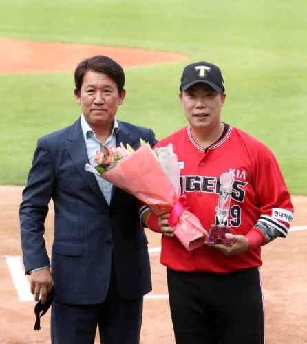 [해륙뉴스1=KIA 타이거즈]KIA타이거즈가 구단 최다 홈런 기록을 새로 쓴 외야수 나지완에 대한 시상식을 ...