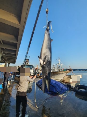 - 포항해양경찰서는 10월 19일 7시경 포항시 남구 강사 1리항 동방 5.5km 해상에서 어선 A호(7톤급, 통발)가 통발 원줄에 걸려 죽은 밍크고래(5m, 둘레 2.2m)를 혼획했다고 밝혔다. -