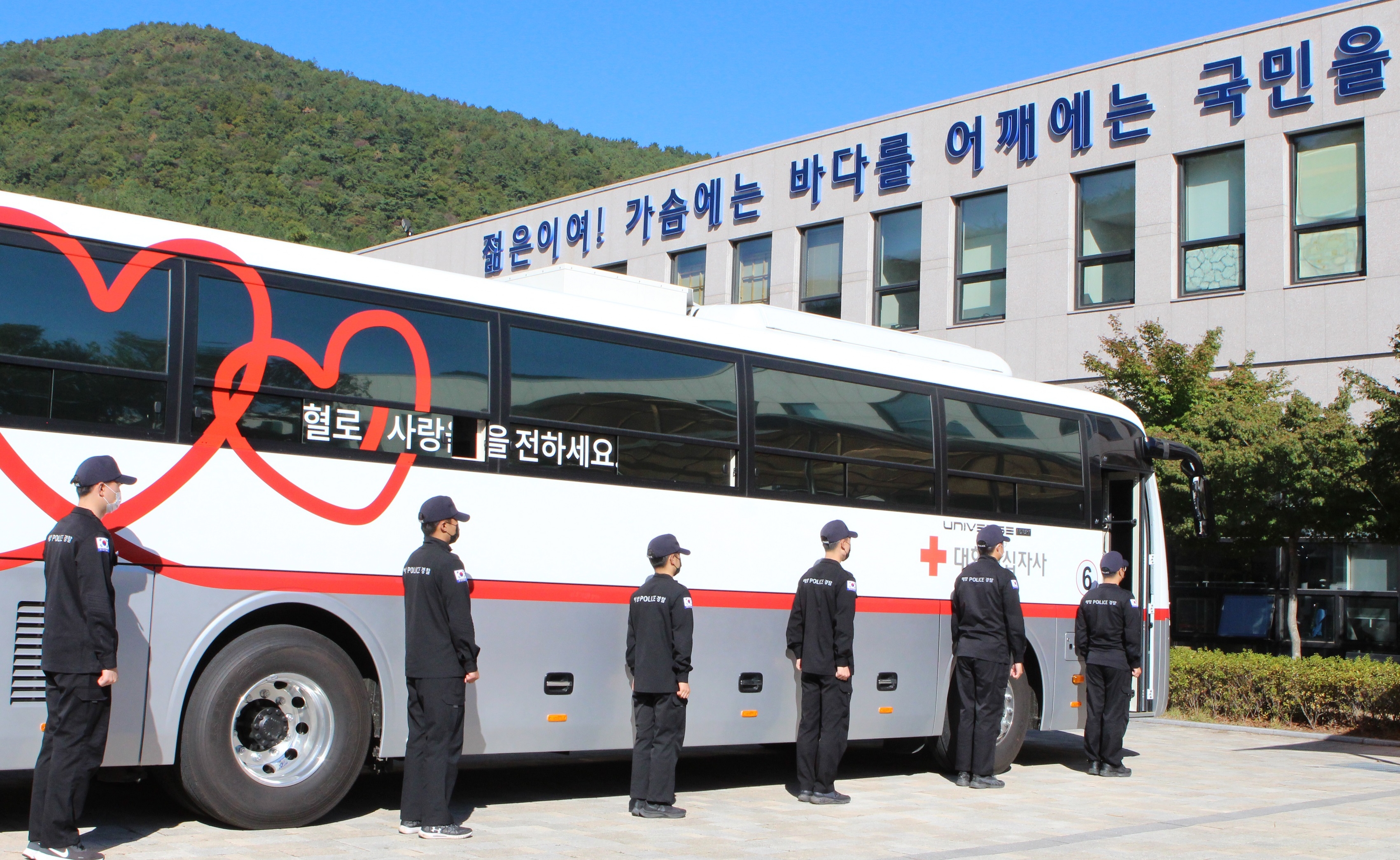 이번 단체헌혈은 코로나19 확산 방지를 위한 사회적 거리 두기 캠페인으로 개인별 헌혈이 줄어드는 상황에서 안정적 혈액 수급과 범국민 생명나눔을 위해 교직원과 신임의경, 신임경찰 학생 등 500여 명이 동참했다.
