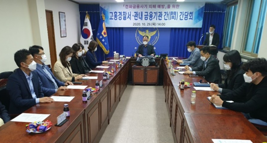 [고흥경찰서]=고흥경찰서(서장 김진천)에서는 10월 29일 2층 소회의실에서 신성래 수사과장, 김태봉 광주은행 고흥지점장, 진승민 녹동농협 상무 등 관내 금융기관 관계자 20명 등이 참석한 가운데 ‘전화금융사기’ 피해 예방을 위한 간담회를 개최했다.