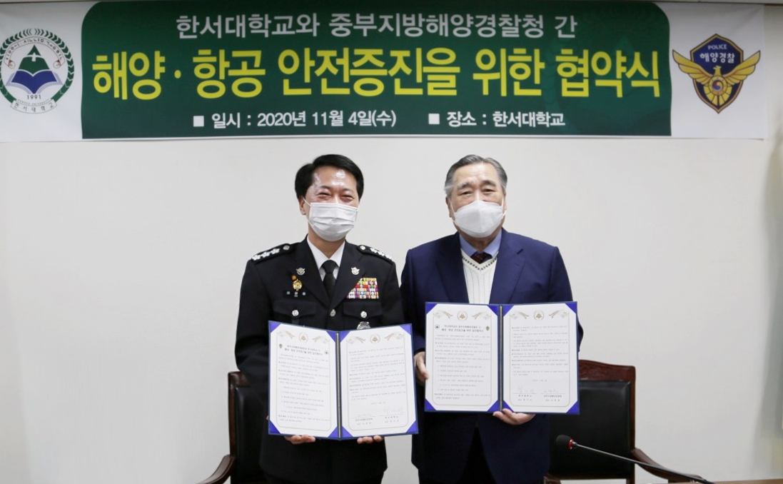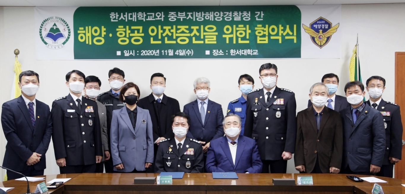 중부지방해양경찰청(청장 오윤용)은 한서대학교(총장 함기선)와 4일 오전 충남 태안 한서대 태안캠퍼스에서 「해양‧항공 안전증진 및 상호발전을 위한 업무협약서」를 체결했다고 밝혔다.