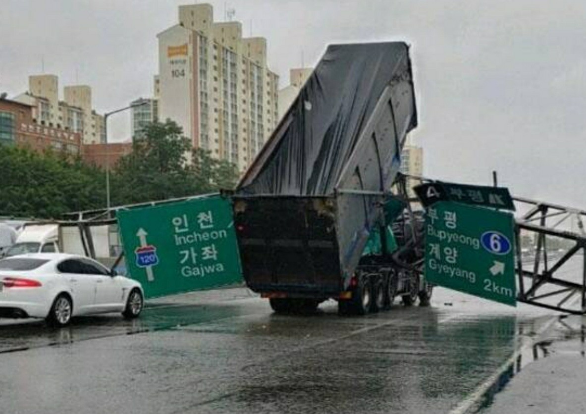이 사고로 인명피해는 없었으나 표지판이 도로 위로 떨어지면서 편도 4차로 도로의 일부가 통제돼 차량 정체가 빚어졌다.