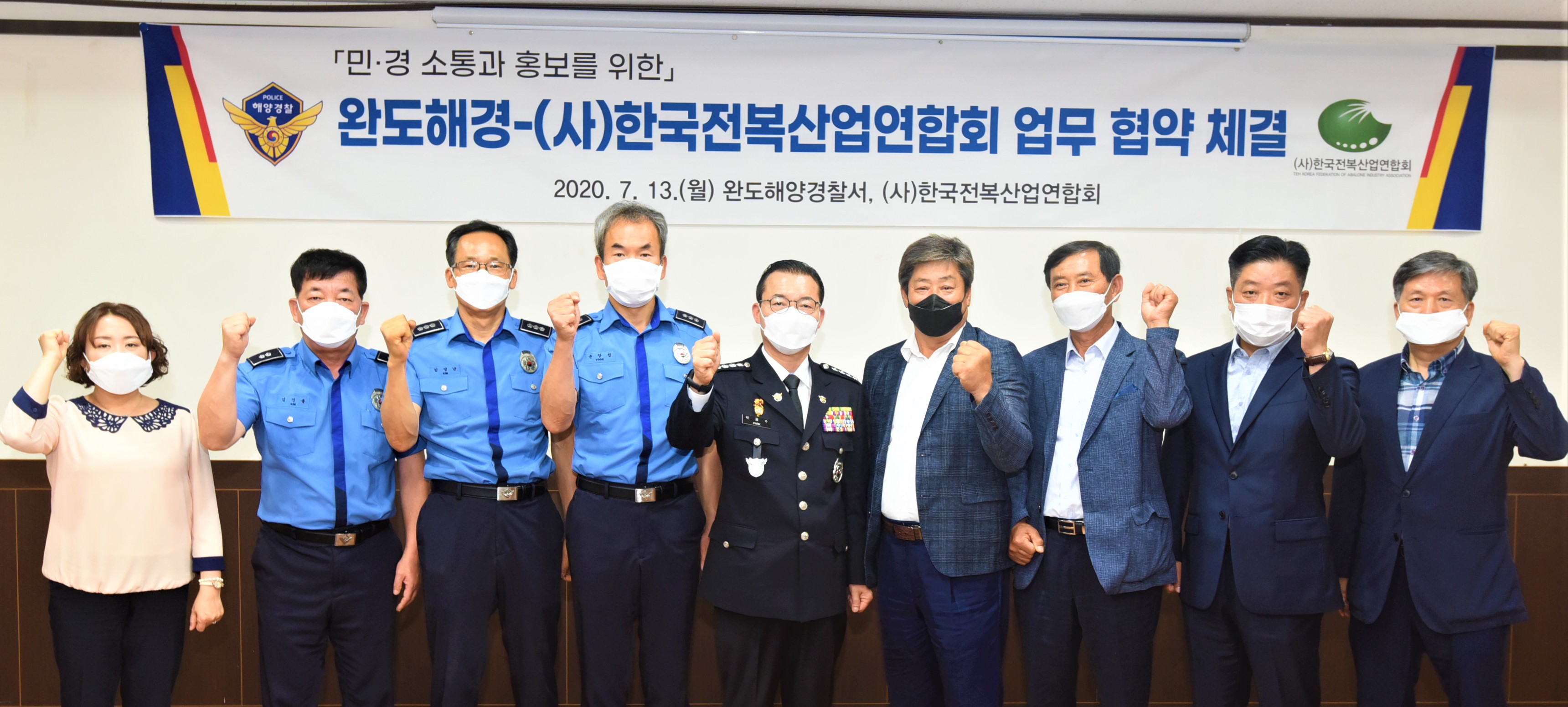이번 업무 협약은 완도해경서장과 각 과장 4명, 한국 전복산업연합회장 외 3명, 총 9명이 참석한 가운데 코로나 19 방역수칙을 철저히 준수하여 이뤄졌다