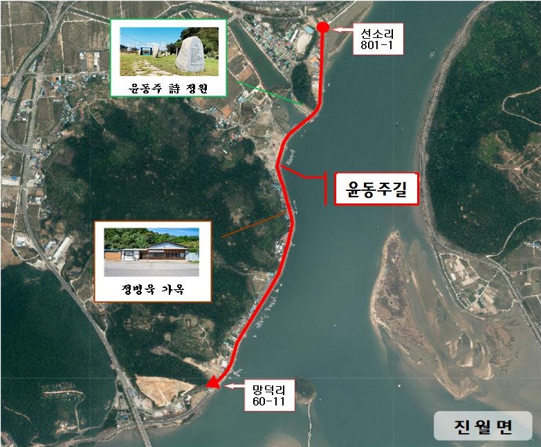 광양시는 진월면 선소리 801-1번지부터 망덕리 60-11번지까지 망덕포구 거리를 ‘윤동주길’ 명예도로명으로 부여한다고 15일 밝혔다.