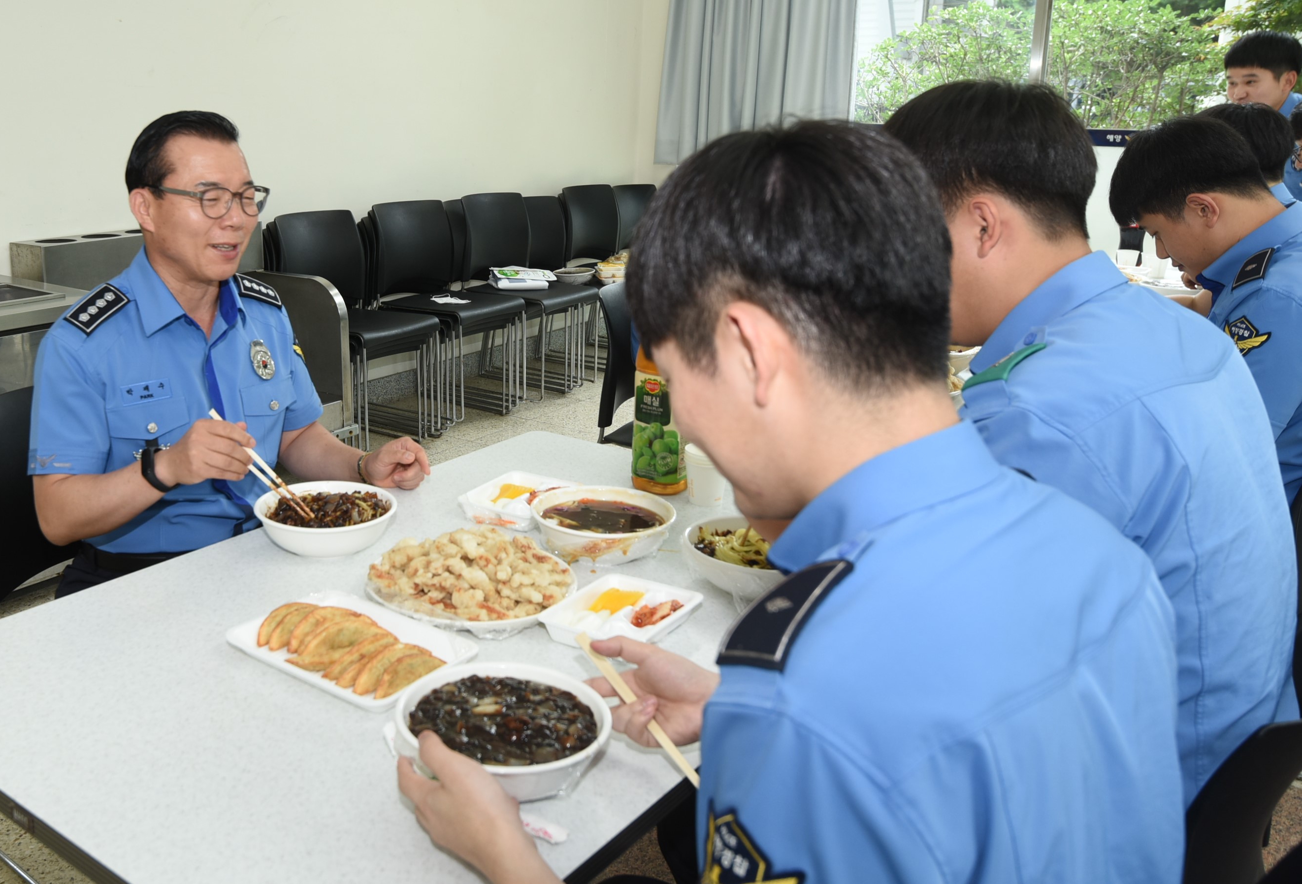 또한 이날 완도해경에서는 박제수 서장과 의무경찰들이 함께 덕분에 챌린지에 참여하고 코로나19로 인한 저하된 사기를 극복하기 위해 지휘관과 함께하는 짜장면 DAY를 실시했다.