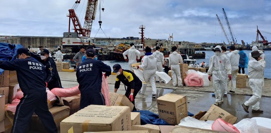 해경은 사고첫날인 21일 3천톤급과 3백톤급 경비함정을 현장에 급파하여 선원을 구조하고 사고선에 적재된 24톤의 기름이 새어나오지 않도록 탱크 공기구멍과 찢긴 선체를 막는 작업을 진행했다.
