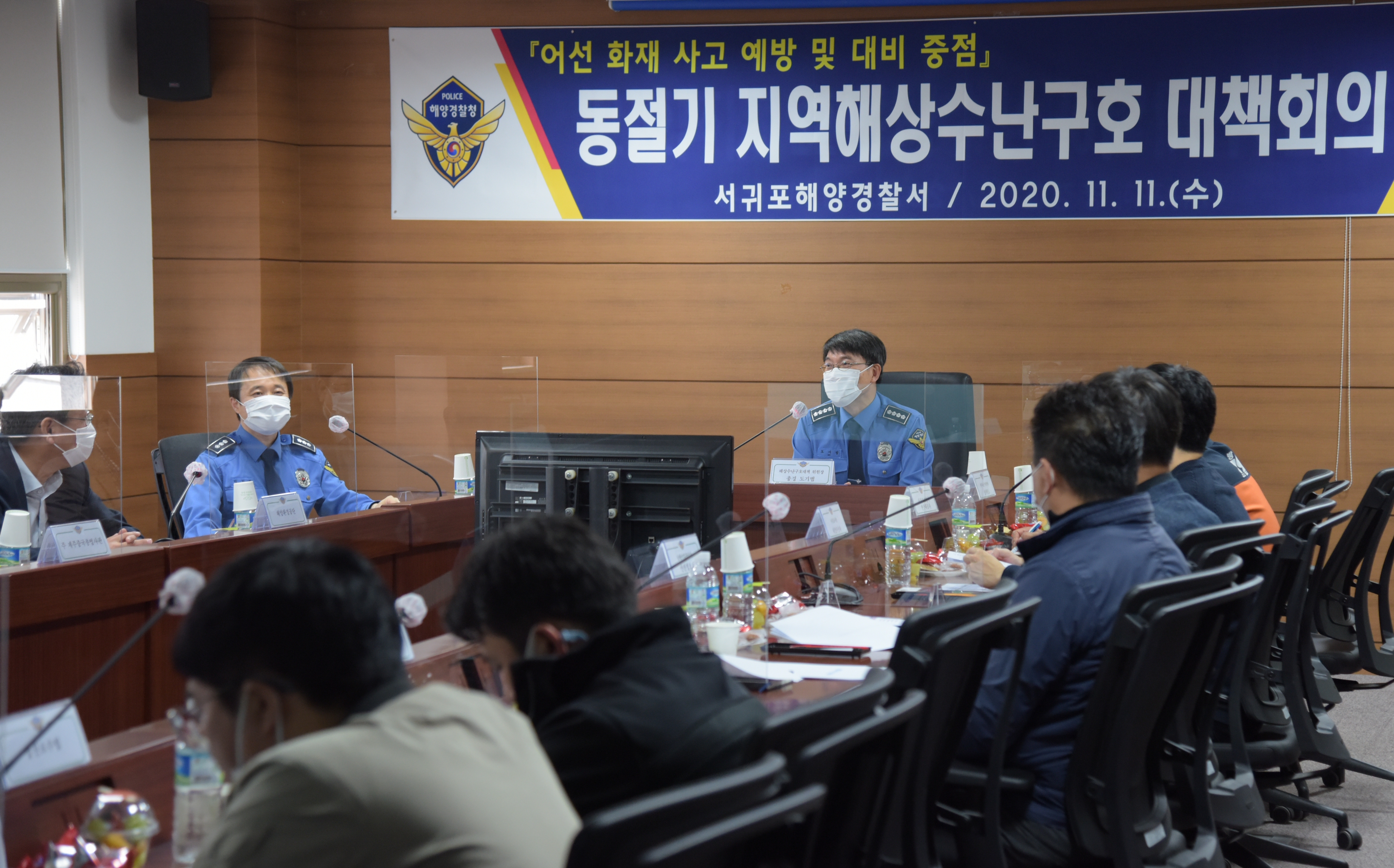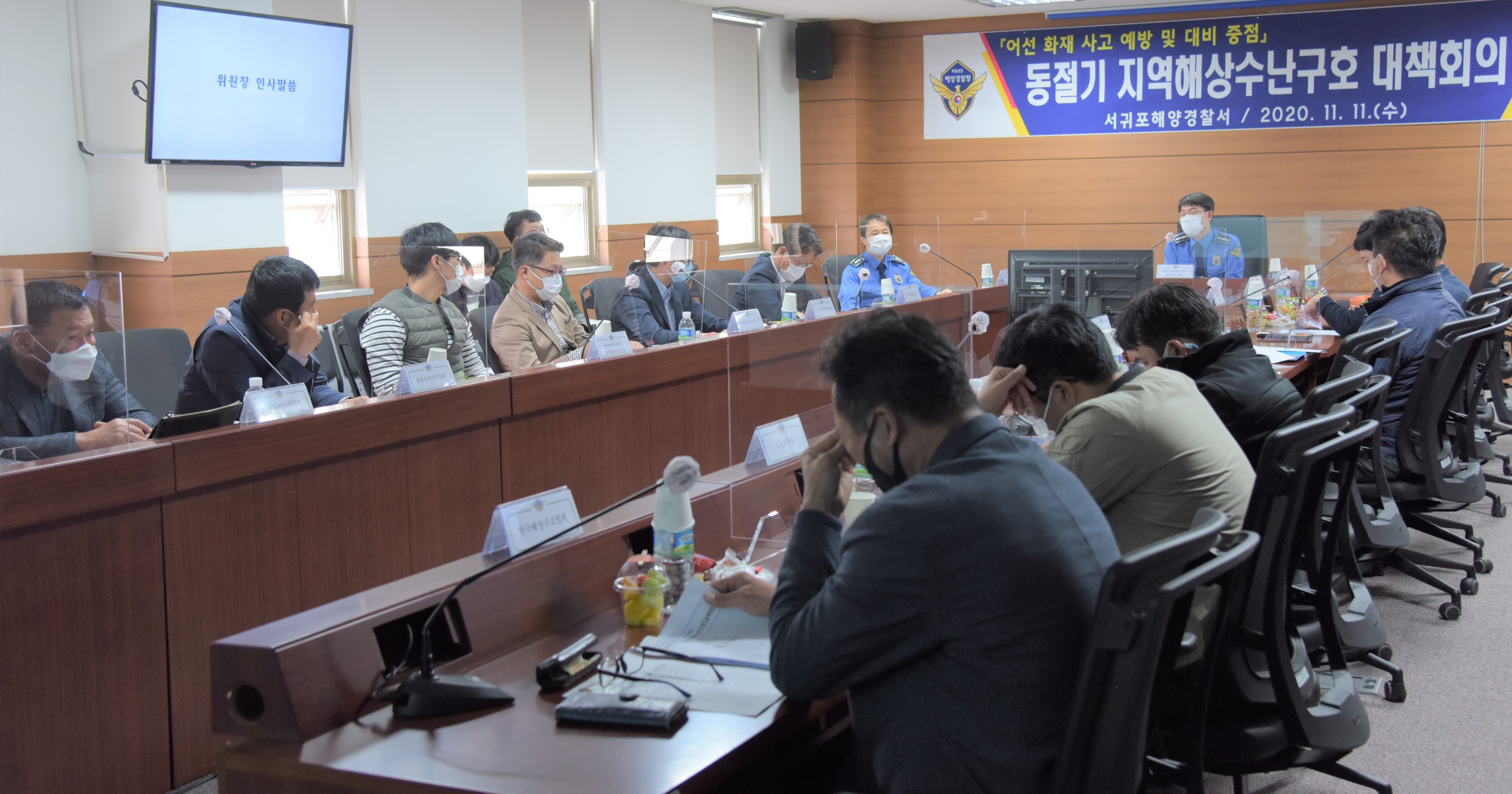 - 서귀포해양경찰서(서장 도기범)는 어선화재 사고 등 겨울철 해양사고 예방과 해양사고 발생 시 신속한 구조체계 확립을 위해 오늘(11일)「지역 해상수난구호 대책회의」를 개최하였다고 밝혔다. -