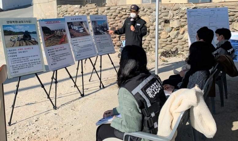 완도해양경찰서(서장 박제수)는 지난 11월 12일 완도 명사십리 해수욕장에서 지자체 및 관계기관 담당자 등 7개 기관과 민간 자원봉사자 약 25명이 참가하여 해안방제교육‧훈련을 실시했다고 밝혔다.