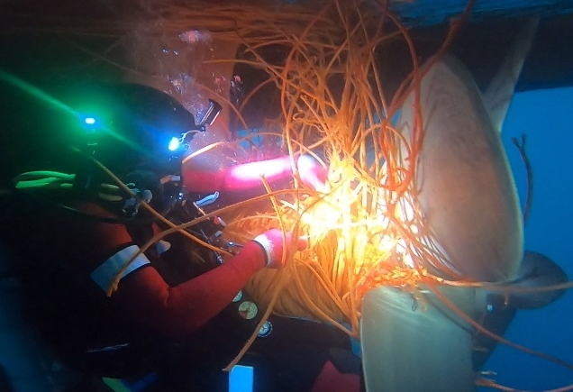 동해해경에 따르면 오늘 오전 7시경 울릉도 북서방 약 74km 해상에서 8명이 승선한 채낚기 어선이 조업 중 스크루에 줄이 감겨 표류중이라는 신고를 접수하고 인근에 경비 중이던 1500톤급 경비함정을 현장에 급파해 잠사요원들이 입수하여 로프 등 부유물을 제거하였다.